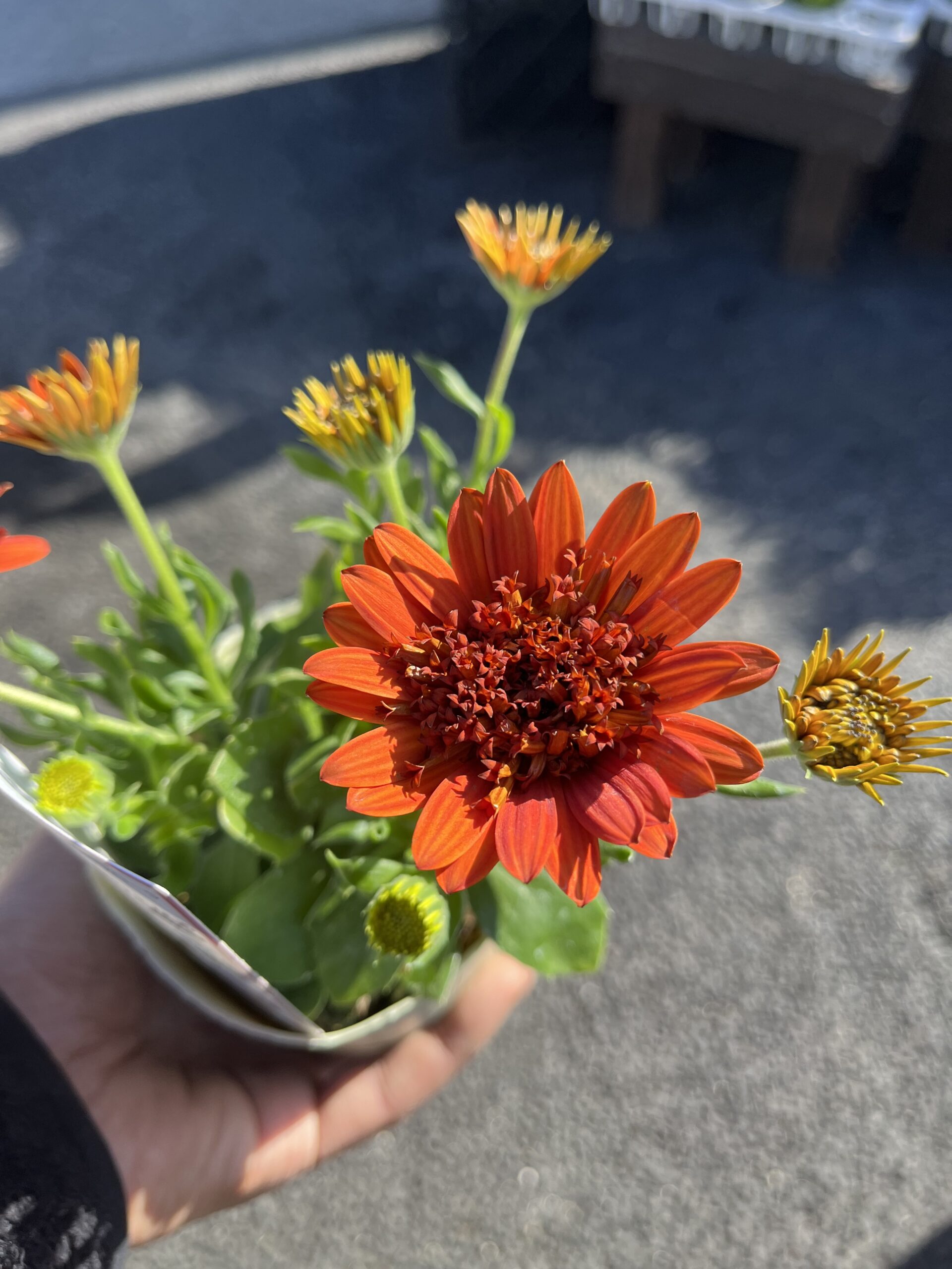 オステオスペルマム『3Dオレンジ』半耐寒性多年草:開花期3月~6月頃。2026年NEW色です。3Dシリーズは八重咲きのオステオスペルマムで中心がモリっとなる品種です。霜や真夏の強烈な暑さは中々耐えれないことが多いので鉢植えで管理していただくのをおすすめいたします。コンパクトにまとまる華やかな品種です。