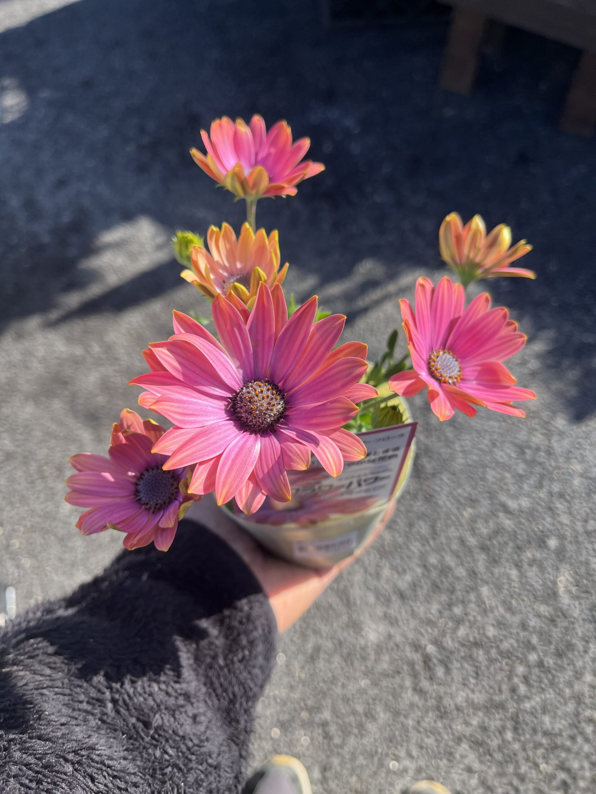 オステオスペルマム『フラワーパワーローズサプライズ』半耐寒性多年草:開花期3月~6月頃。M&Bフローラより。コンパクトで花付きの良い品種で一株で色々な色幅が出てくれる品種です。