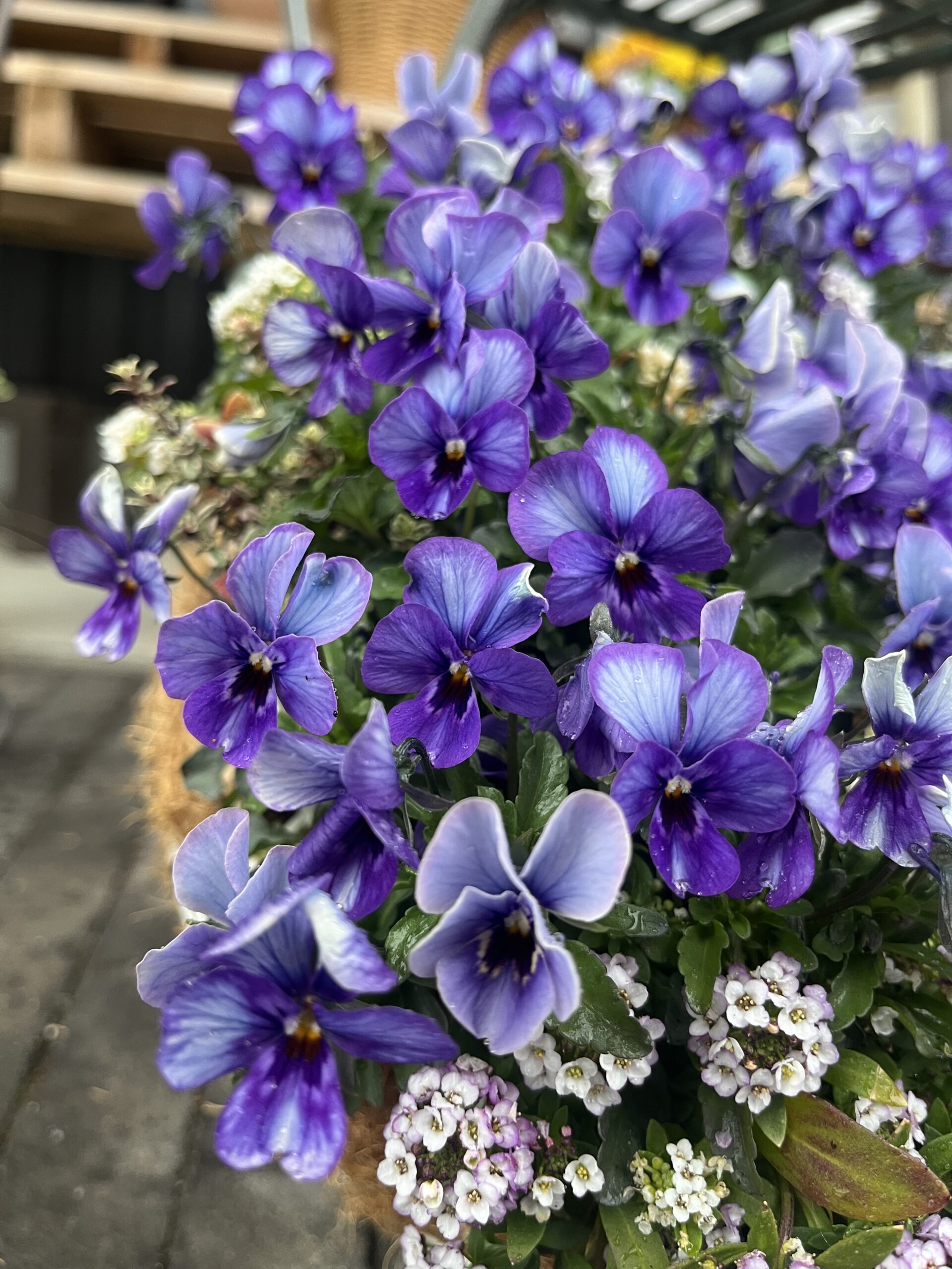 寄せ植えのビオラが綺麗すぎて…アカシアテレサも入荷です。
