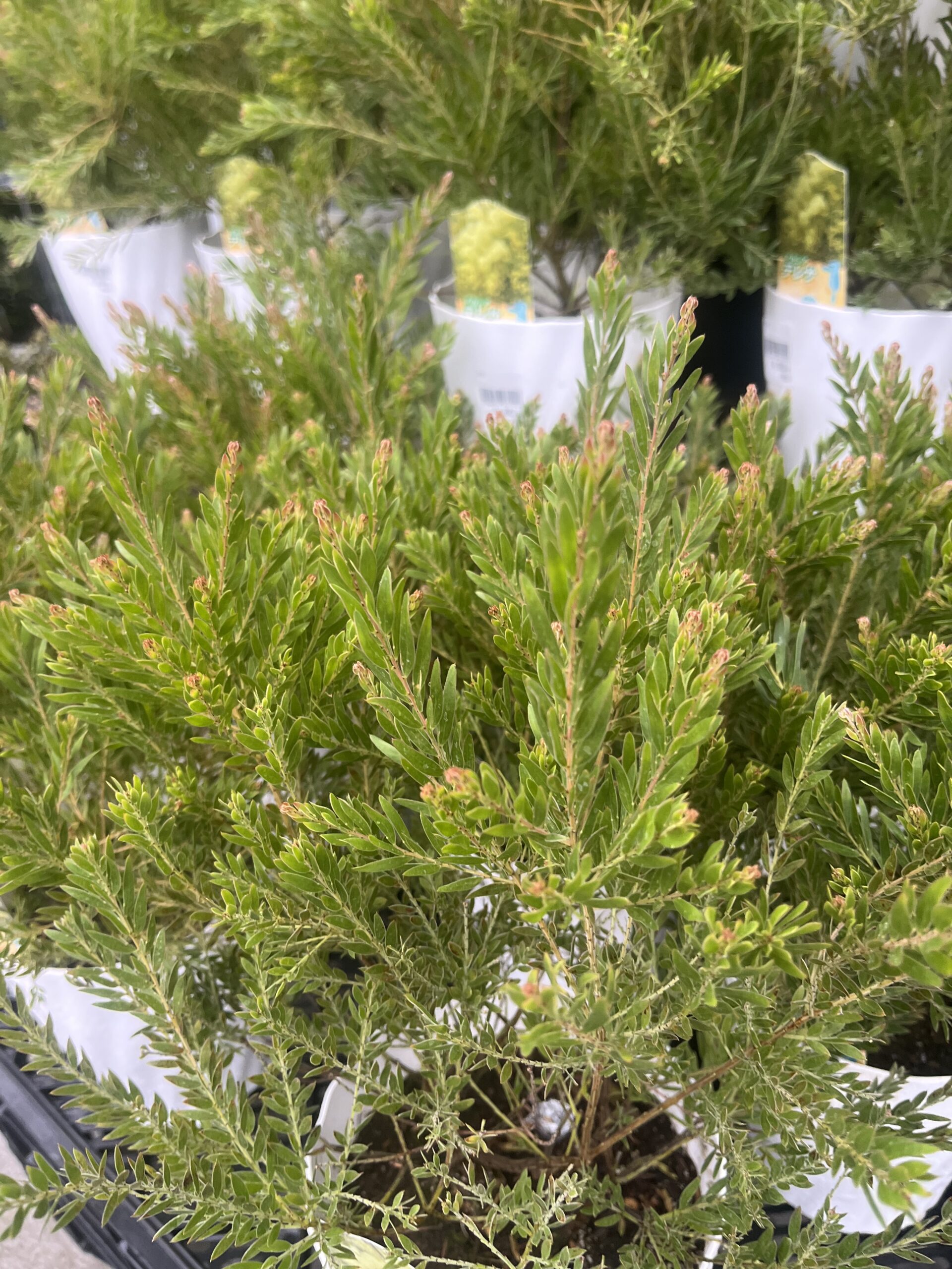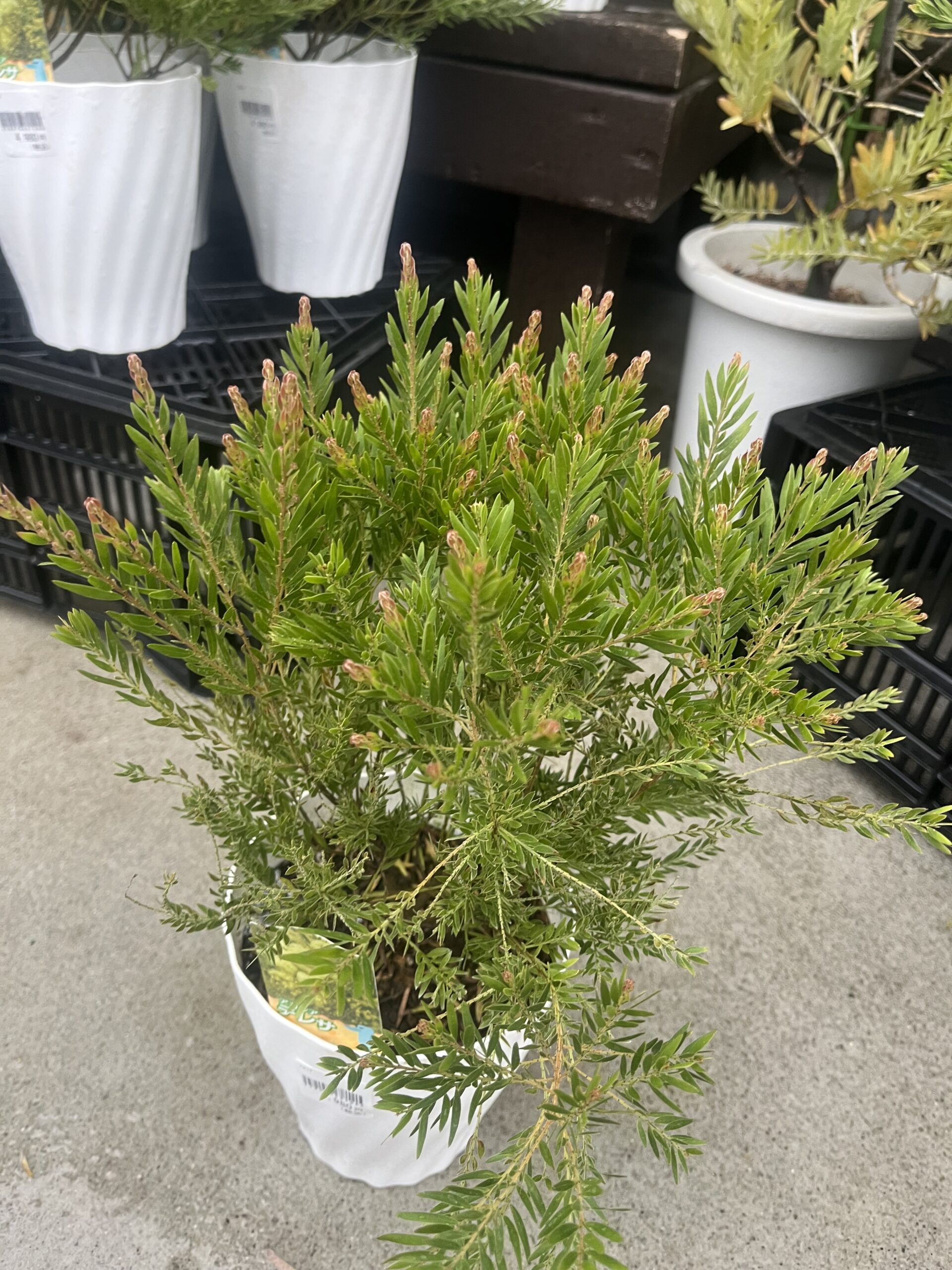 アカシア『テレサ』:常緑樹:2月~4月頃。アカシアは種類がたくさんあります。その中で背が高くなる品種が非常に多いですが、テレサは比較的コンパクトにまとまるアカシアです。葉っぱの形状は細くとがったような葉っぱですが、お花はミモザと同じような黄色のお花が咲きます。どちらかとクリームイエローのようなお花かと私の所感ですが…加湿は厳禁ですが、水切れには注意していただくようにお願いします。