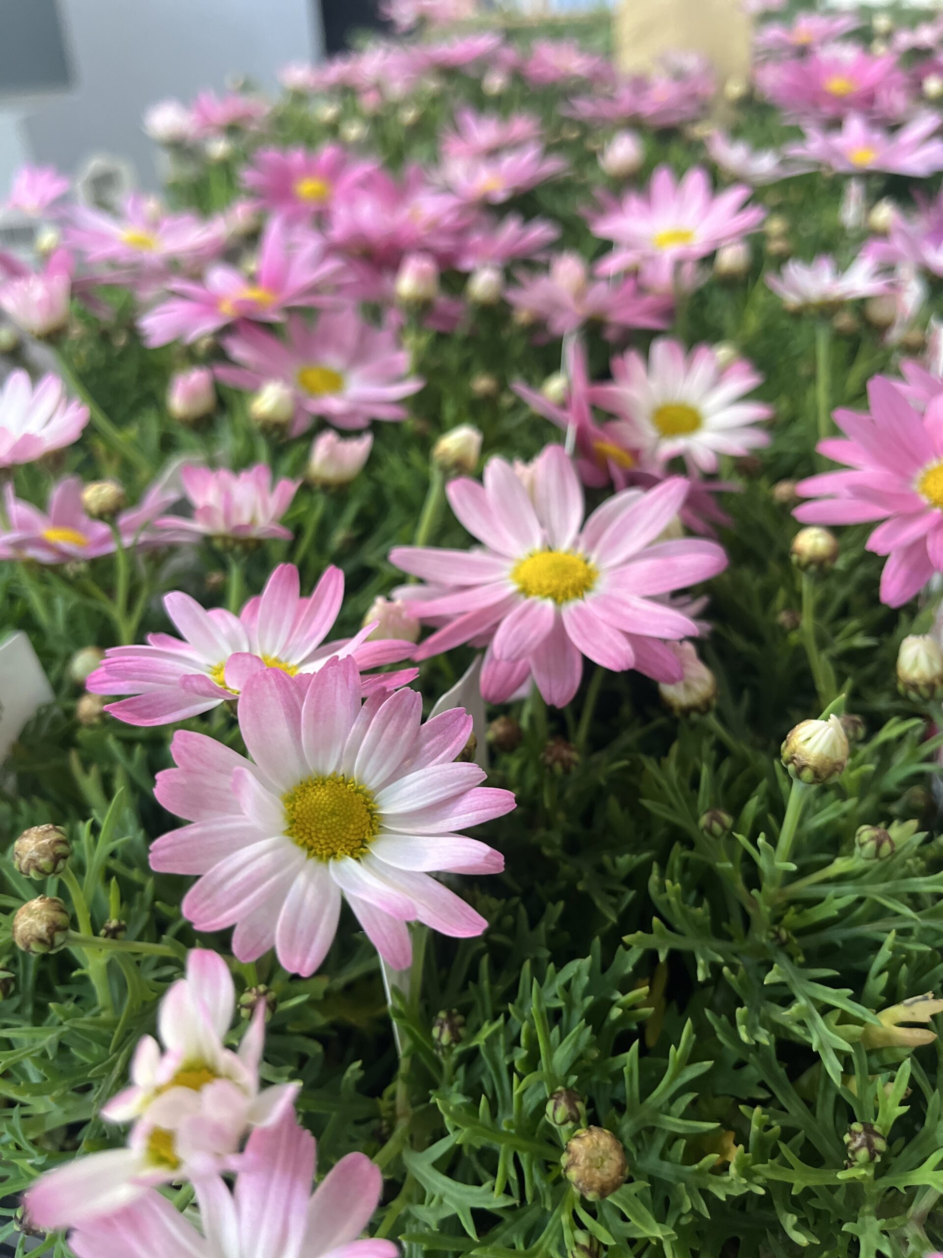 マーガレット『ガーネットピンク』半耐寒性多年草:開花期3月~6月頃。mマーガレット『ガーネットピンク』:半耐寒性多年草 開花期3月~6月頃。以前からあるマーガレットですが、その中でも薄いピンクでめちゃ可愛い品種です。性質もとっても素直です。ひときわ輝く色の品種です。